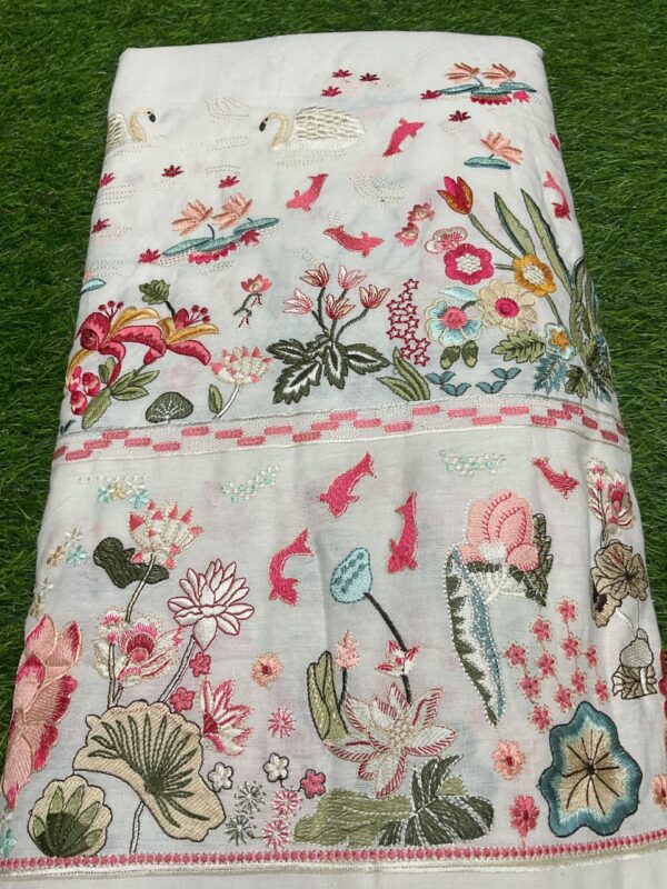Beauti full embroidered fabrics ,cotton fabrics ,dyeable fabrics ,fancy lahenga choli fabrics ,width:54″